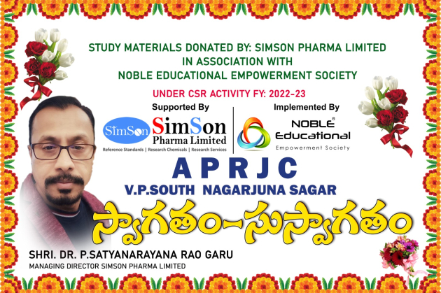 SimSon Pharma Limited, Distributed books and study materials to Andhra Pradesh Residential Junior College,Nagarjuna Sagar,Andhra Pradesh.