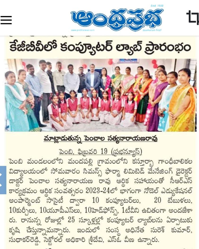SimSon Pharma Limited's commitment to the "Digital Literacy Program" extends further with the inauguration of the 5th Digital Literacy Lab at Girls High School in a tribal village of Telangana State.