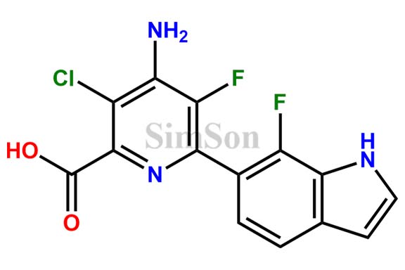 | Chemical Name : | 4-Amino-3-chloro-5-fluoro-6-(7-fluoro-1H-indol-6-yl)-2-pyridinecarboxylic acid |